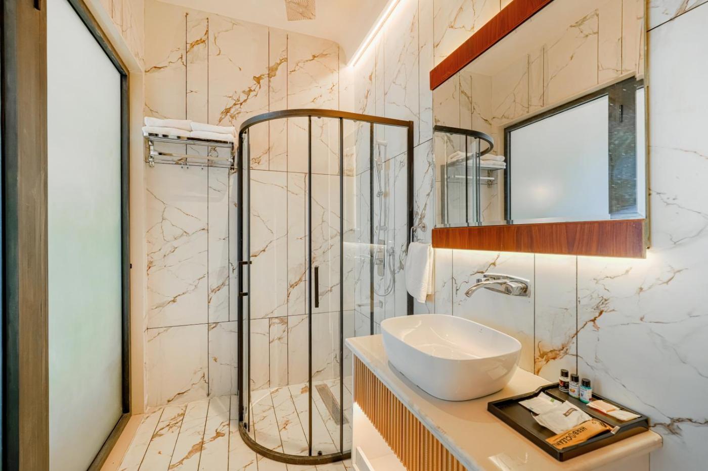 Deluxe Room. Offering free toiletries, this double room includes a private bathroom with a shower, a hairdryer and slippers. The double room features tiled floors, a seating area with a flat-screen TV with cable channels, air conditioning, soundproof walls, as well as a tea and coffee maker. The unit offers 1 bed. ;