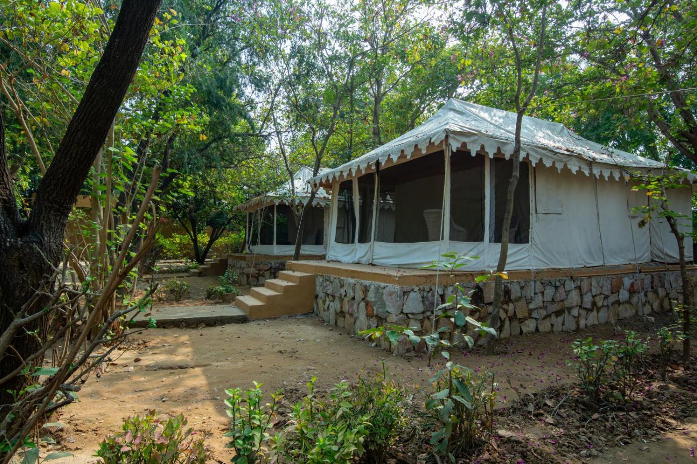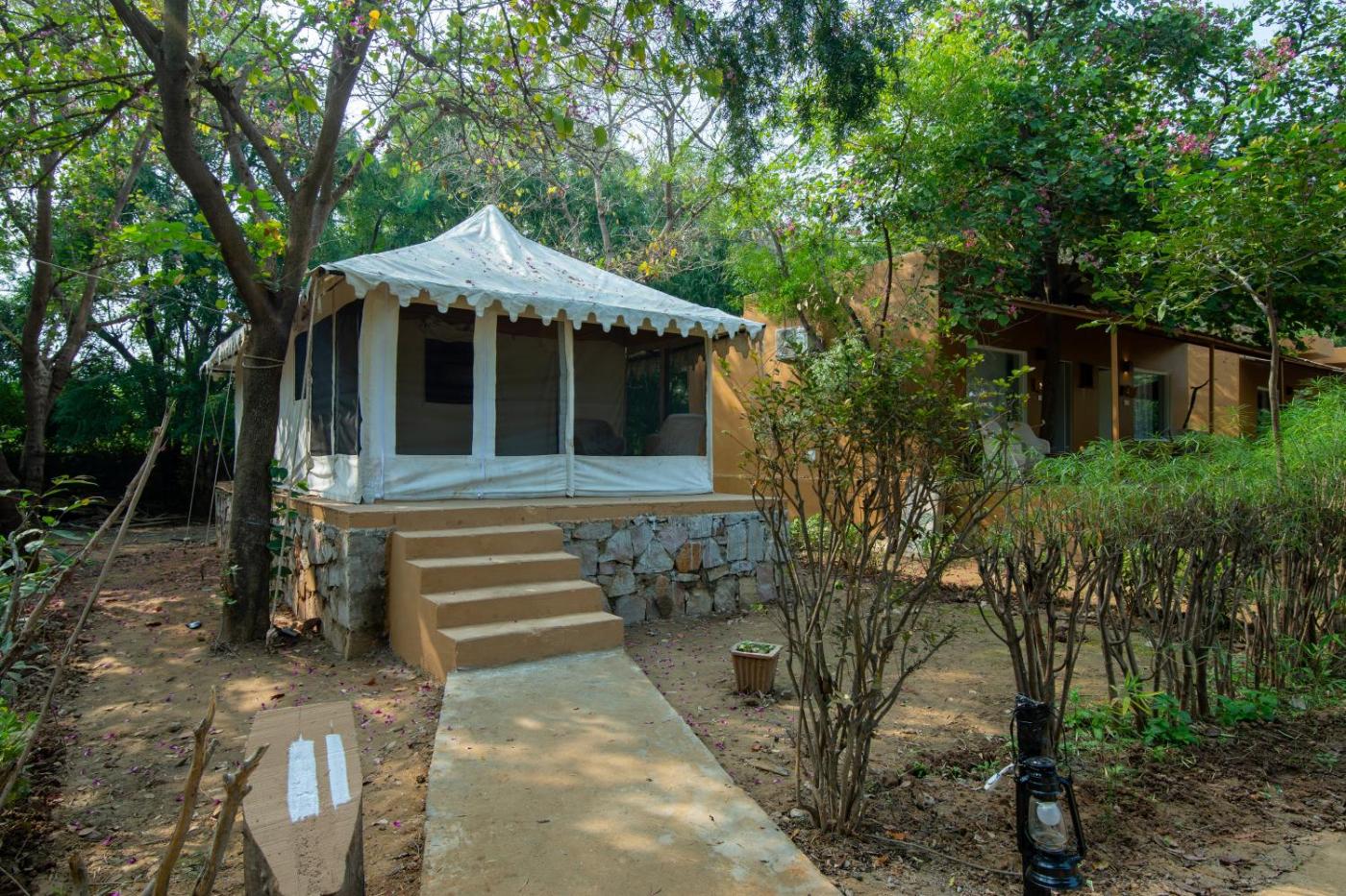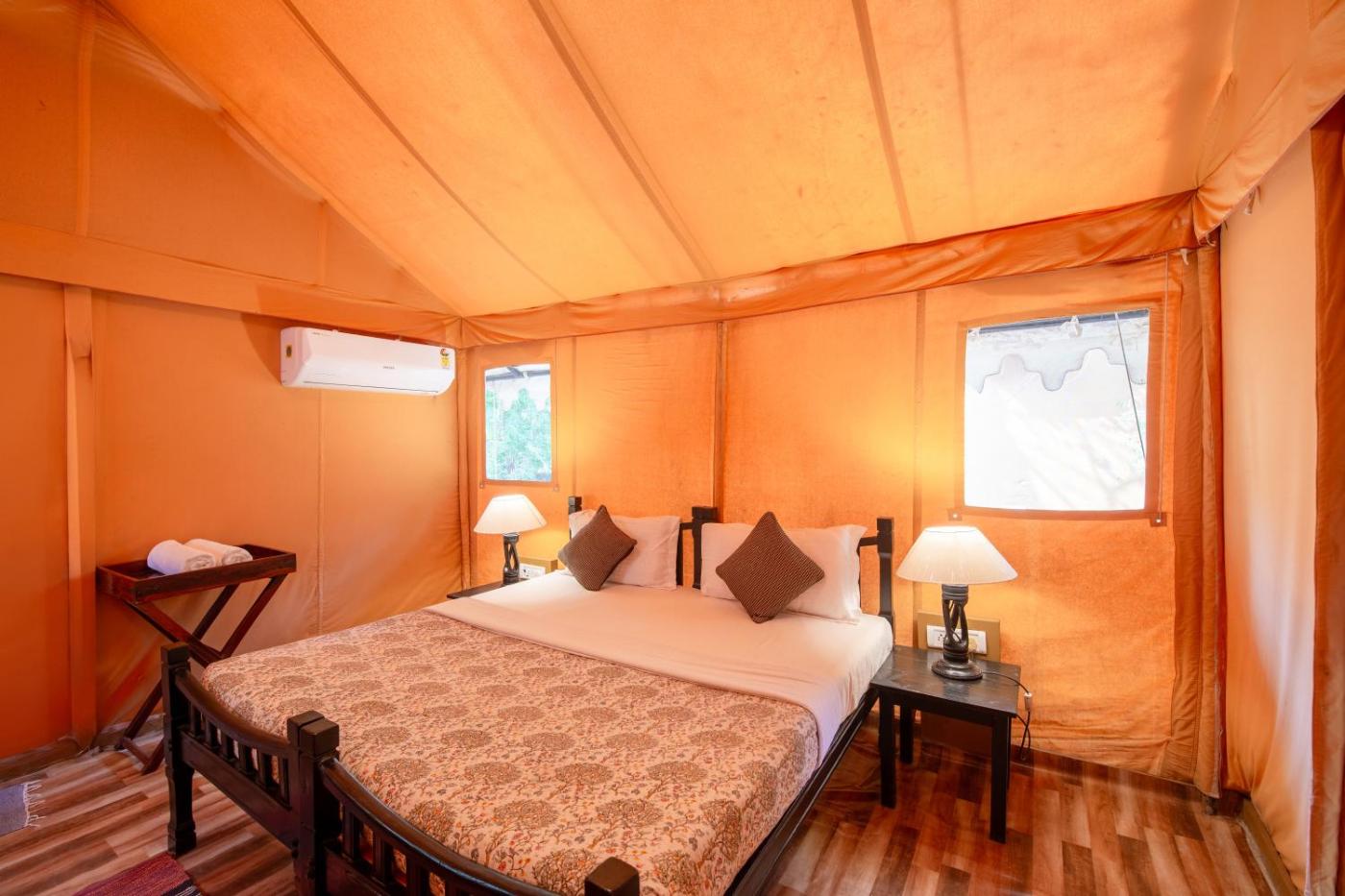 Stay in an air-conditioned tent at Tiger Machan, which is 1.5 km from Rathambore National Park. With the wild jungle on one side, the property has its own restaurant.